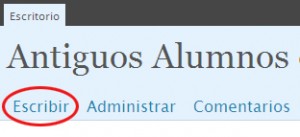 Una vez dentro del escritorio del blog, pinchamos en el enlace “Escribir” del menú superior: