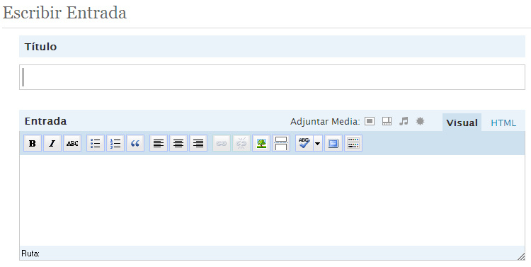 Para crear las entradas utilizaremos el editor de texto enriquecido: